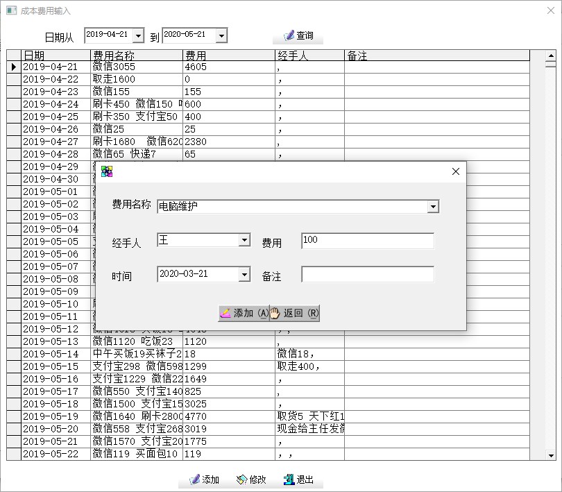 (成本查询录入)