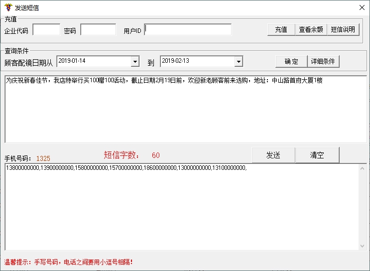 顾客回访:定期对顾客进行回访,提醒隐形到期时间等(需开通短信群发功能)
