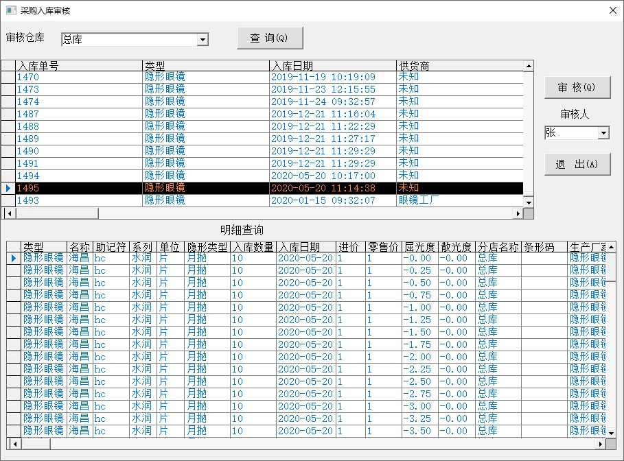 可以对已经采购入库的商品进行查看,审核