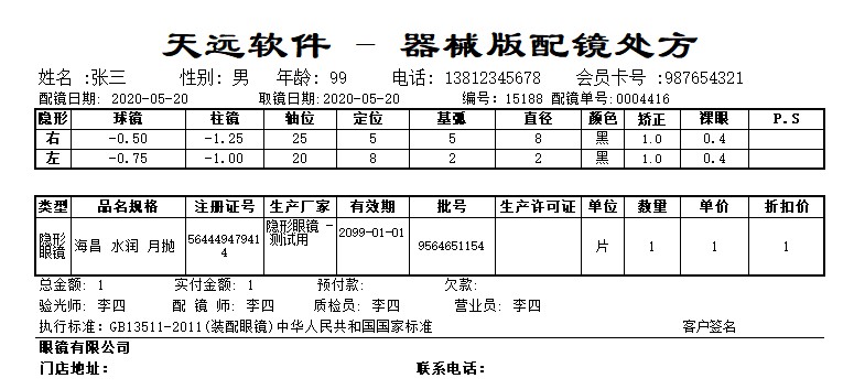 天远眼镜管理软件器械增强版(GSP隐形认证)版: