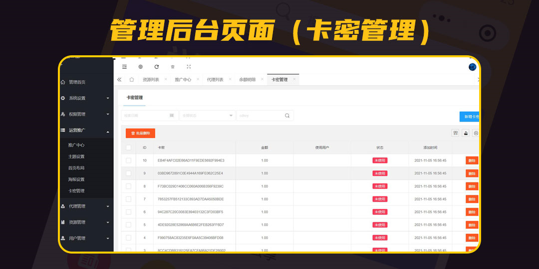 支持小程序 ,公众号H5 ,支持无限开通代理分站,赠送独家网赚资源库每日更新,适合创业资源库,学科辅导资料等、无限开通分站,总后台统一管理,分站抽佣,分站独立后台,首页DIY,无限卡密,卖分站,卖代理,卖会员等盈利方式多样,独立小程序 微信支付接入。