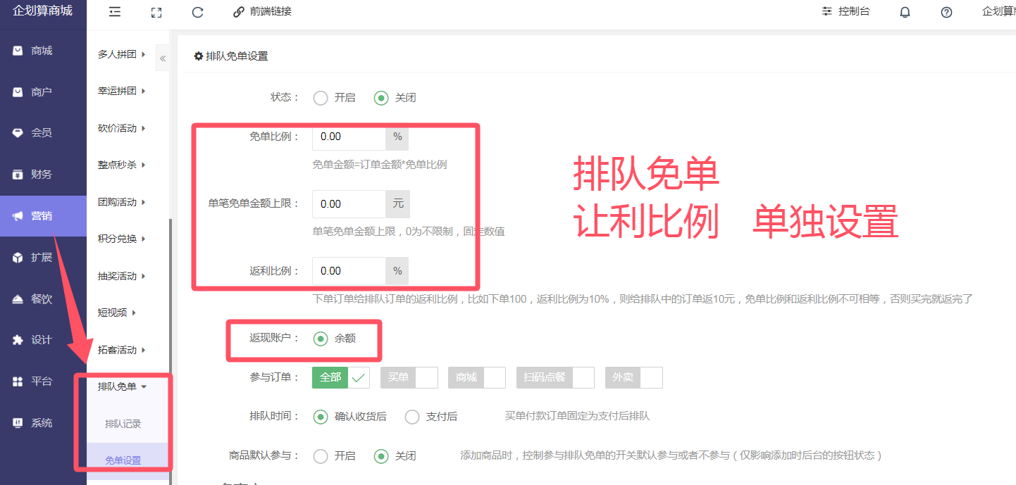 2、退出机制 消费者可中途选择退出排队,平台将一次性返还当前免单金额一定比例(如 60%,比例可自定义)的购物币,用于线上或线下消费抵扣。