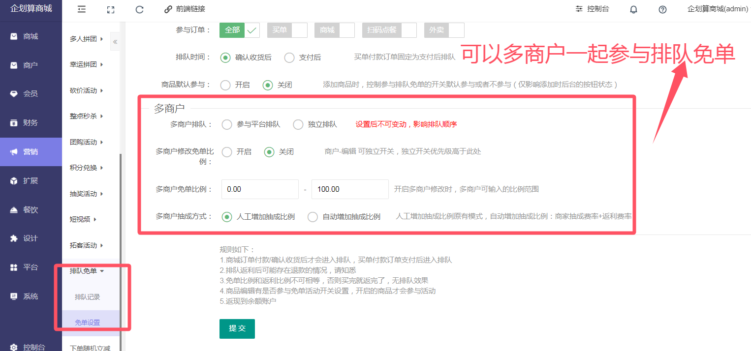 2.0 版本:引入队列平均分配和排队多人出局制。平台和商家让利的一半用于维持排队系统运作,另一半则平均分配给每位排队用户;允许自定义数量的用户同时出局,并根据排名分配不同比例的让利。