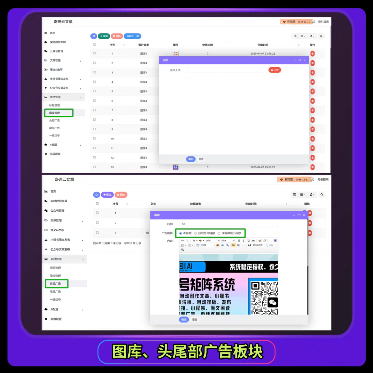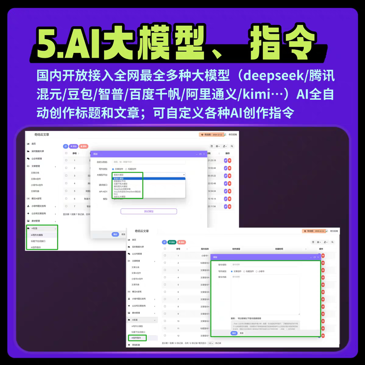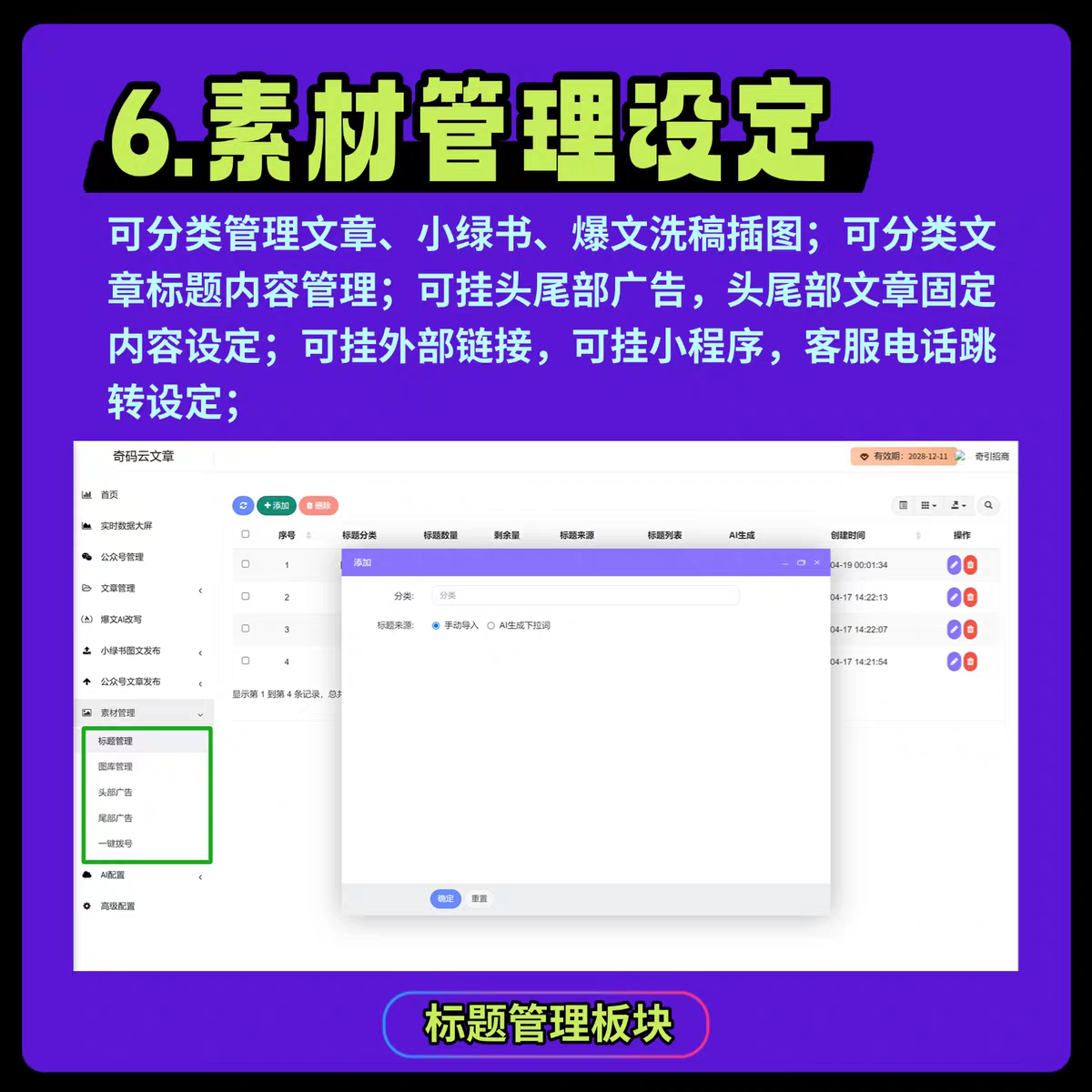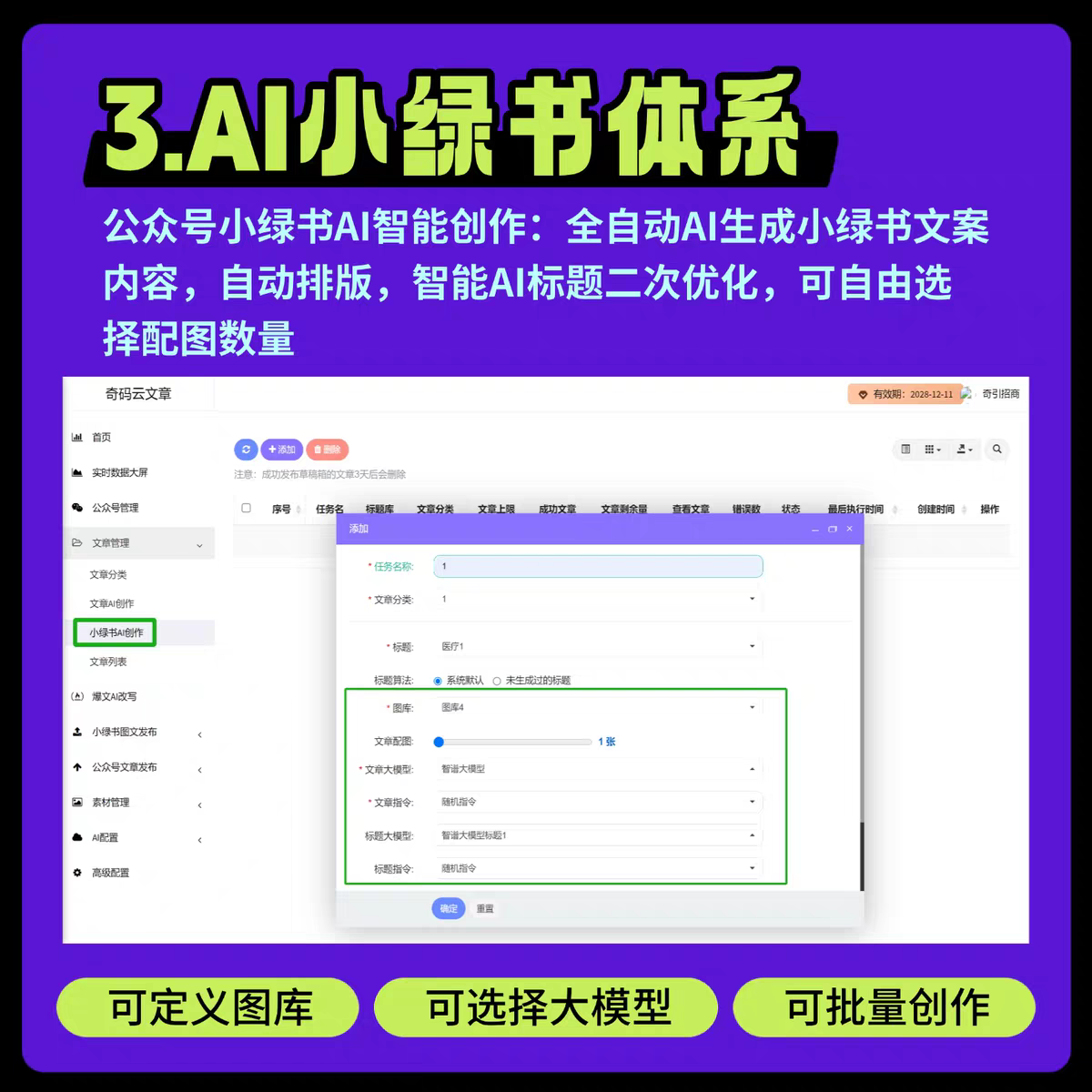 公众号批量发文系统- 核心能力:支持多账号管理、图文/视频内容批量上传、定时发布;自带内容查重、排版模板功能,大幅提升公众号运营效率。 – 适用人群:自媒体工作室、企业新媒体部门、多账号运营者。